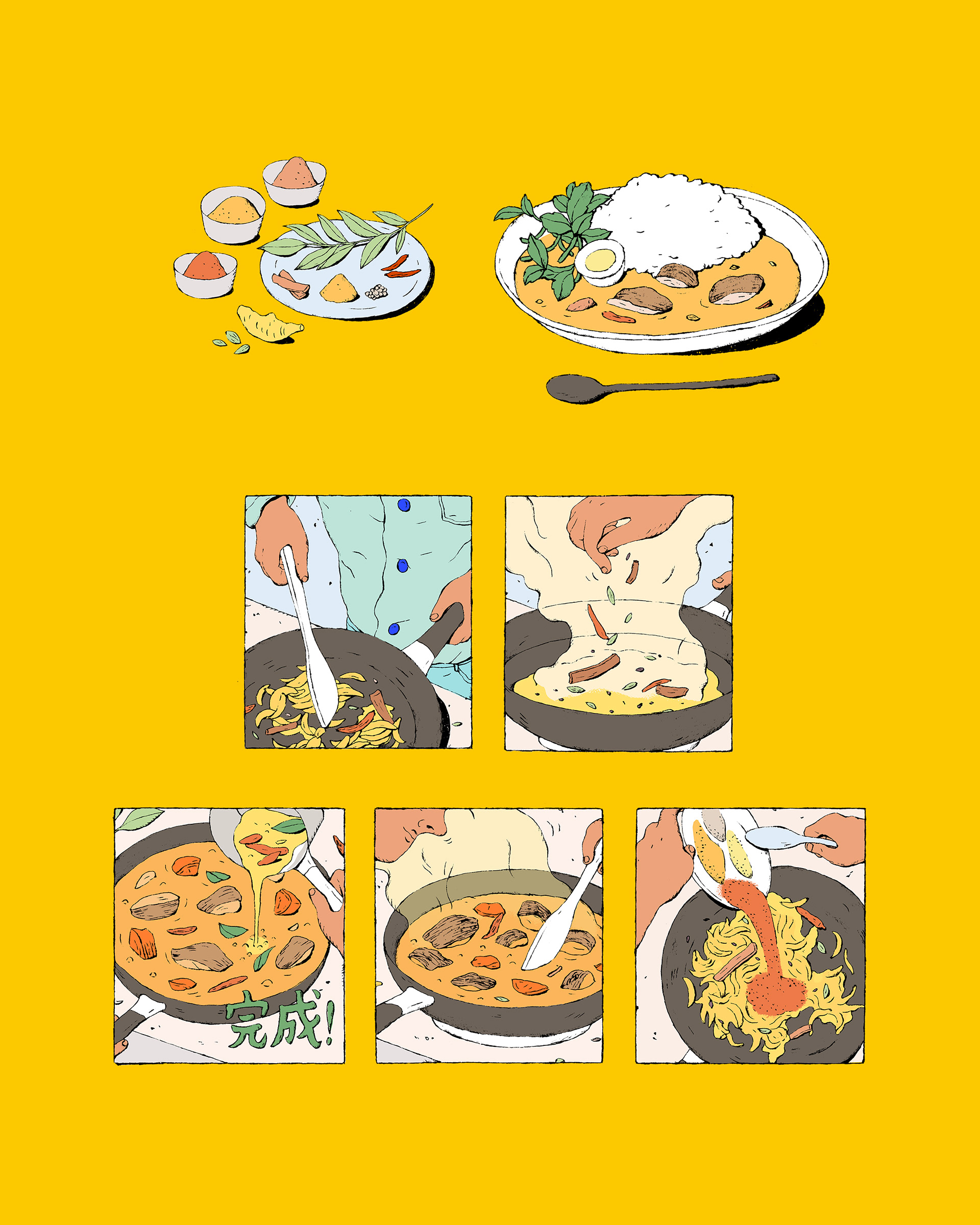 Illustration for the door picture of the August issue of dancyu's curry feature.